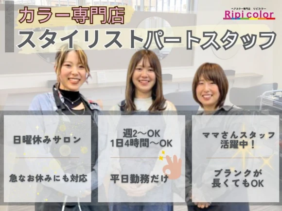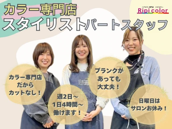 【指名予約制なし】ブランクがあっても安心のフォロー体制!ママさんスタッフ多数活躍中のパート美容師アシスタント